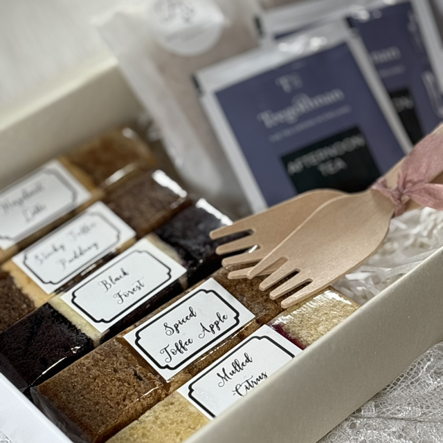 Experience a selection of Baker Cake flavours in the comfort of your own home. Each box includes five slices of cake (seasonal variations of our most-loved classics), handmade biscuits, and a printed flavour guide, all beautifully packaged in a recyclable gift box.